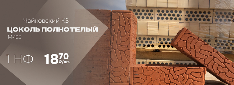 Чайковский кирпич цокольный 1НФ полнотелый (М-125)